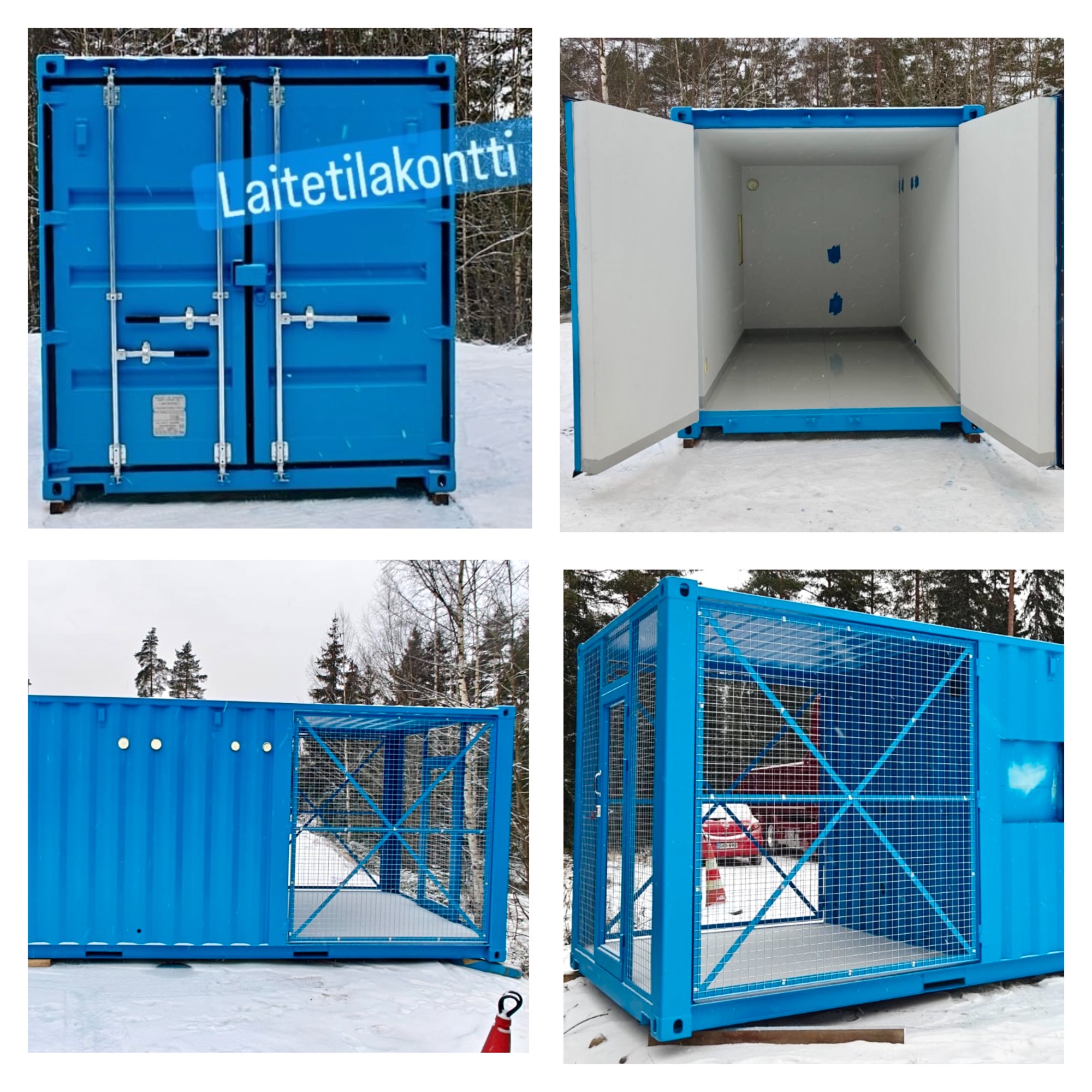 Vuoden viimeisin varustelumme oli 20' DC kontista tehty teollisuuden laitetila. Konttiin tehtiin lämpöeritys, väliseinä sekä erillinen verkko-osio käyntiovella. Huoltoa varten yksi verkkosivu tehtiin avattavaksi malliksi. Konttiin tehtiin myös aukotuksia, joita asiakas hyödyntää kontin jatkovarustelussa.